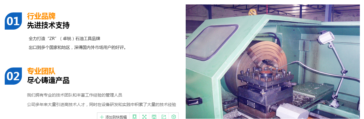 德州卓銳石油機(jī)械有限公司成立于2008年10月,專業(yè)生產(chǎn)螺桿鉆具拆裝架、無(wú)磁懸掛短節(jié)、螺桿鉆具配件、螺桿清膠機(jī)、PDC平面軸承、可調(diào)鉆具配件、360度全旋轉(zhuǎn)拆裝架、螺桿鉆具整機(jī)試驗(yàn)臺(tái)、螺桿鉆具馬達(dá)試驗(yàn)臺(tái)、渦輪鉆具配件、等壁厚螺桿定子加工機(jī)床、等壁厚螺桿鉆具等石油鉆井工具,打撈工具,固井工具及其配件。公司確立并始終堅(jiān)持不懈地發(fā)揚(yáng)“誠(chéng)信,務(wù)實(shí),高效,創(chuàng)新”的企業(yè)精神全力打造“ZR”(卓銳)石油工具品牌。業(yè)務(wù)實(shí)現(xiàn)了快速發(fā)展,并得到業(yè)內(nèi)人士的廣泛認(rèn)同,成為石油裝備制造業(yè)一顆璀璨的新星。